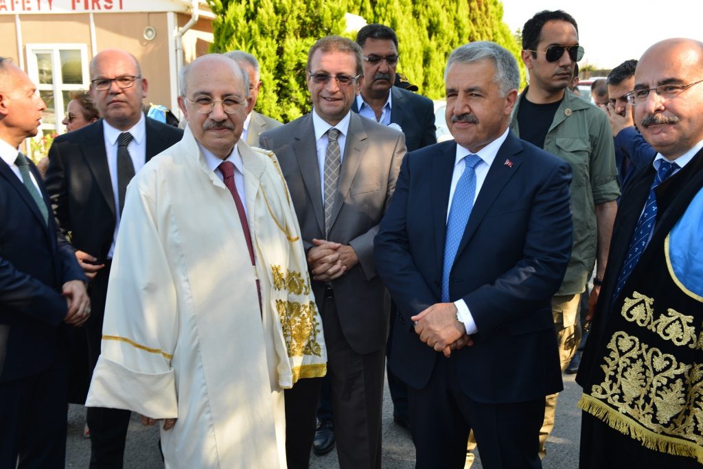 Ulaştırma, Denizcilik ve Haberleşme Bakanı Ahmet Arslan, konuşmasına kendisi de İTÜ mezunu olan Başbakan Binali Yıldırım’ın tebriklerini ileterek başladı. Bakan Arslan, İTÜ ailesinin bir parçası olduğunu ifade ederek, İstanbul Teknik Üniversitesi’nin 244 yıldır bu ülkenin geleceği için çok şey yaptığını, 133 yıllık çok önemli bir fakültesi olan İTÜ Denizcilik Fakültesi’nin ise ülkemizin kalkınmasında katkılarının önemli olduğunu söyledi. Bu katkının bugünden sonra taçlanarak devam edeceğini ifade eden Arslan, böyle bir yuvanın böyle bir ailenin mensubu olmaktan dolayı duyduğumuz gururla inşallah çok daha iyi hizmet vereceğiz, bundan kimsenin şüphesi olmasın.” dedi.