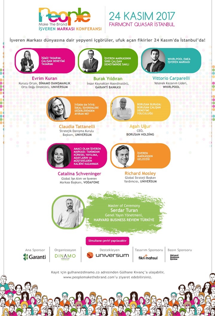Garanti Bankası’nın sponsorluğu ile Dinamo Danışmanlık tarafından düzenlenen People Make The Brand Konferansı’nda 2017 yılında 50.000’e yakın Y kuşağı ile gerçekleşen Universum İdeal İşveren Araştırması sonuçları paylaşılacak.
